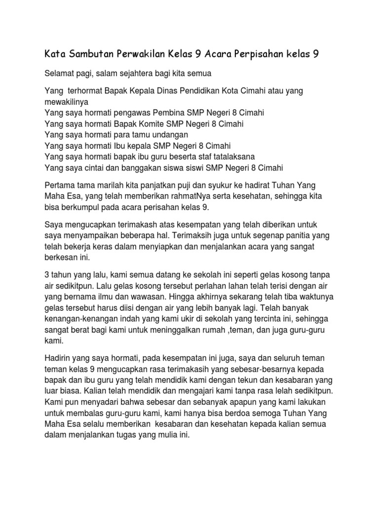 Pidato Perwakilan Kelas 9 Smp Pada Acara Perpisahan Sekolah